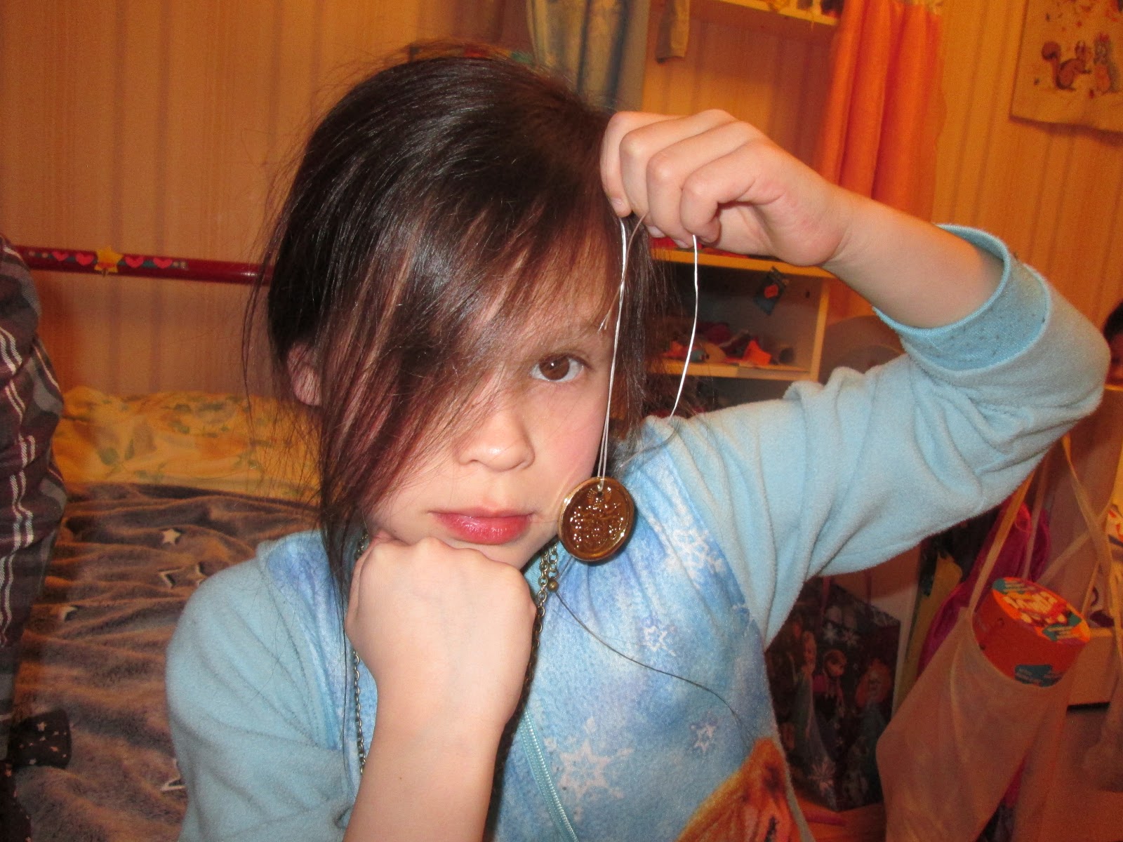 Julie is trots en blij nadat ze een mooie Raveleijn-hanger heeft gekocht van haar spaargeld.